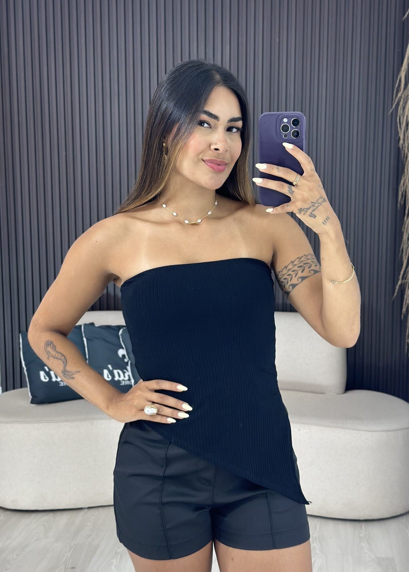 Bata Tomara que Caia com Barra Assimétrica Preta 4026