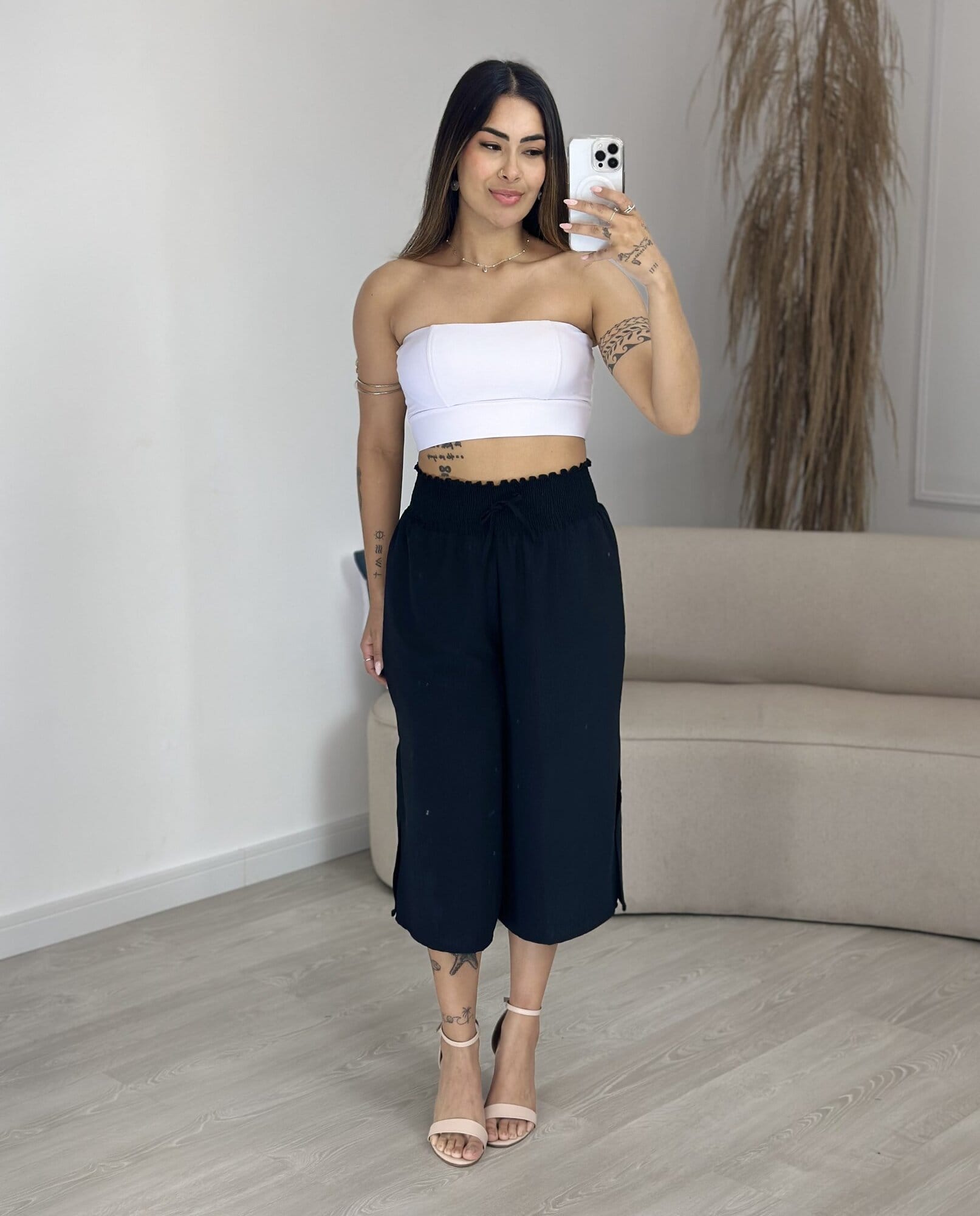 Calca Pantacourt Preta Lisa 057
