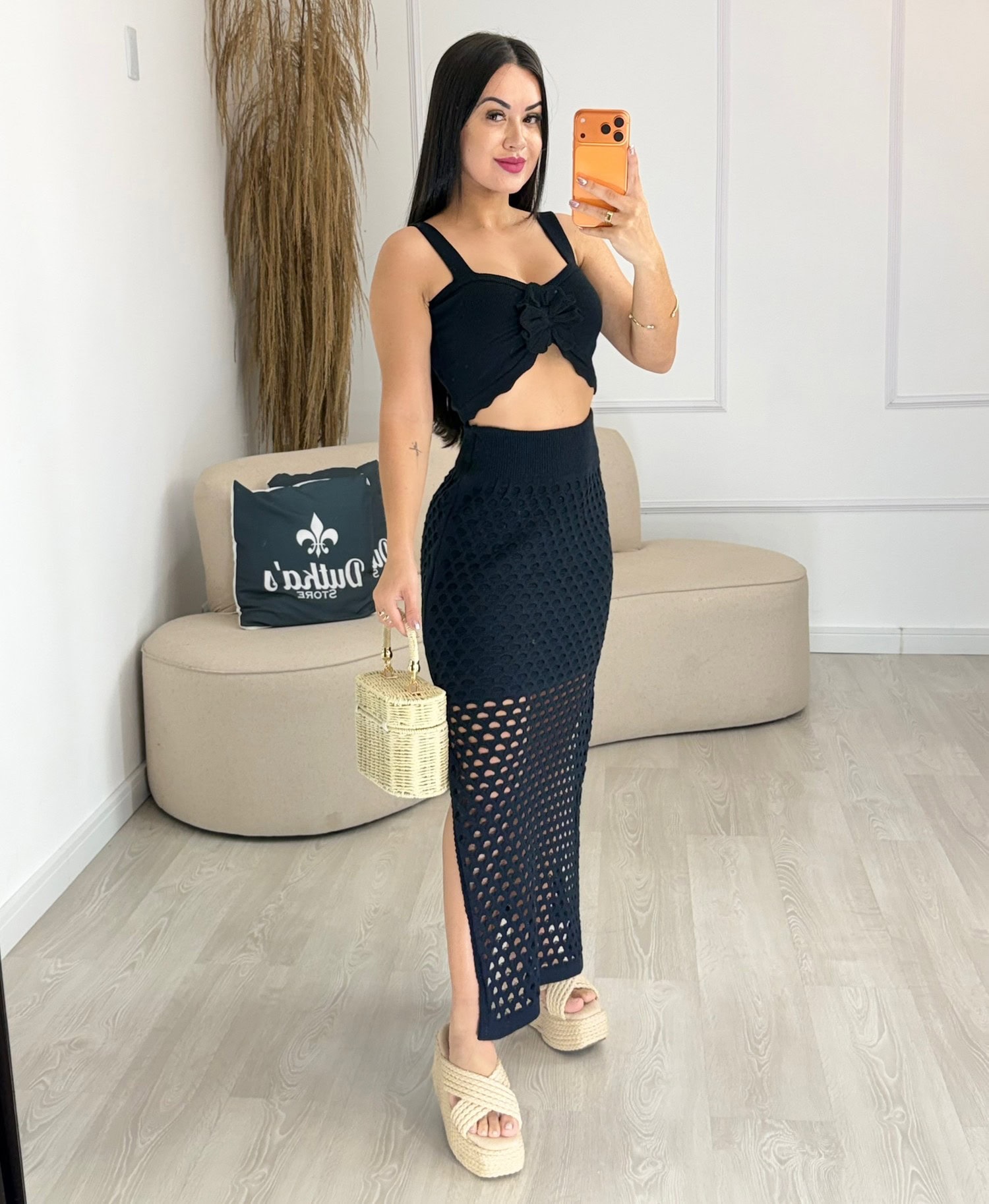Conjunto Modal Flor Preto 1143