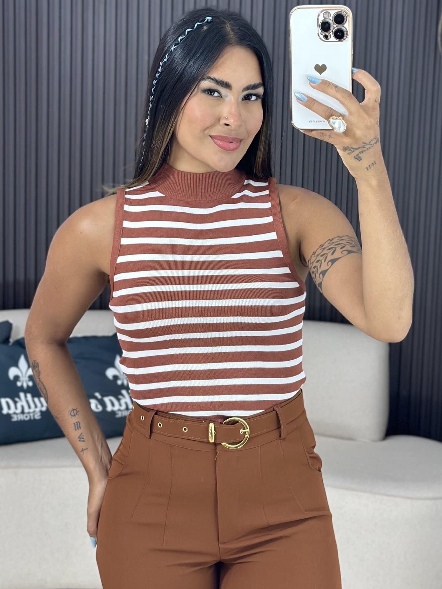 Regata Listrada Marrom e Branco 6190