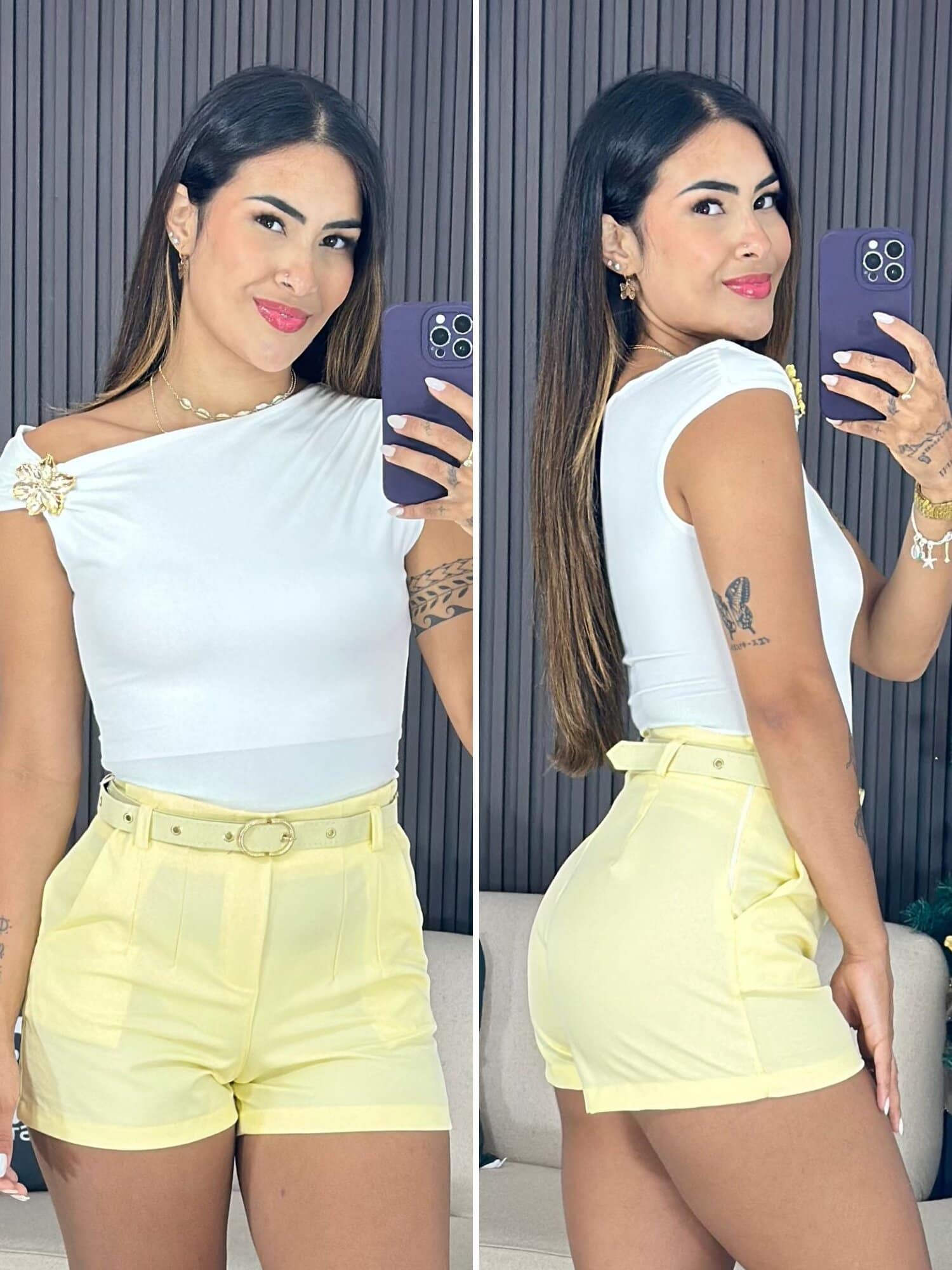Shorts Alfaiataria com Cinto Amarelo 1639