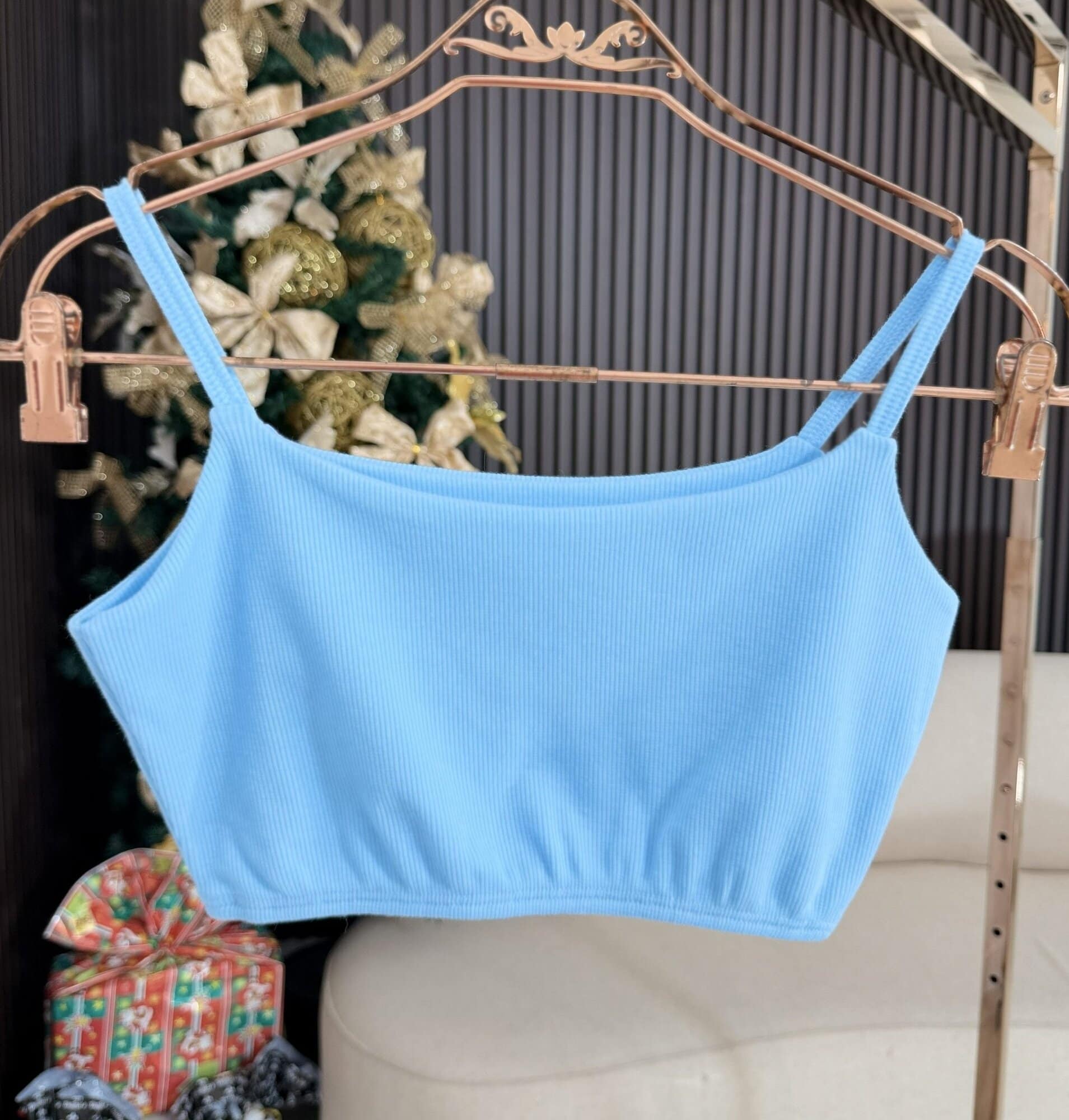 Top Alcinha Canelado Azul 1474