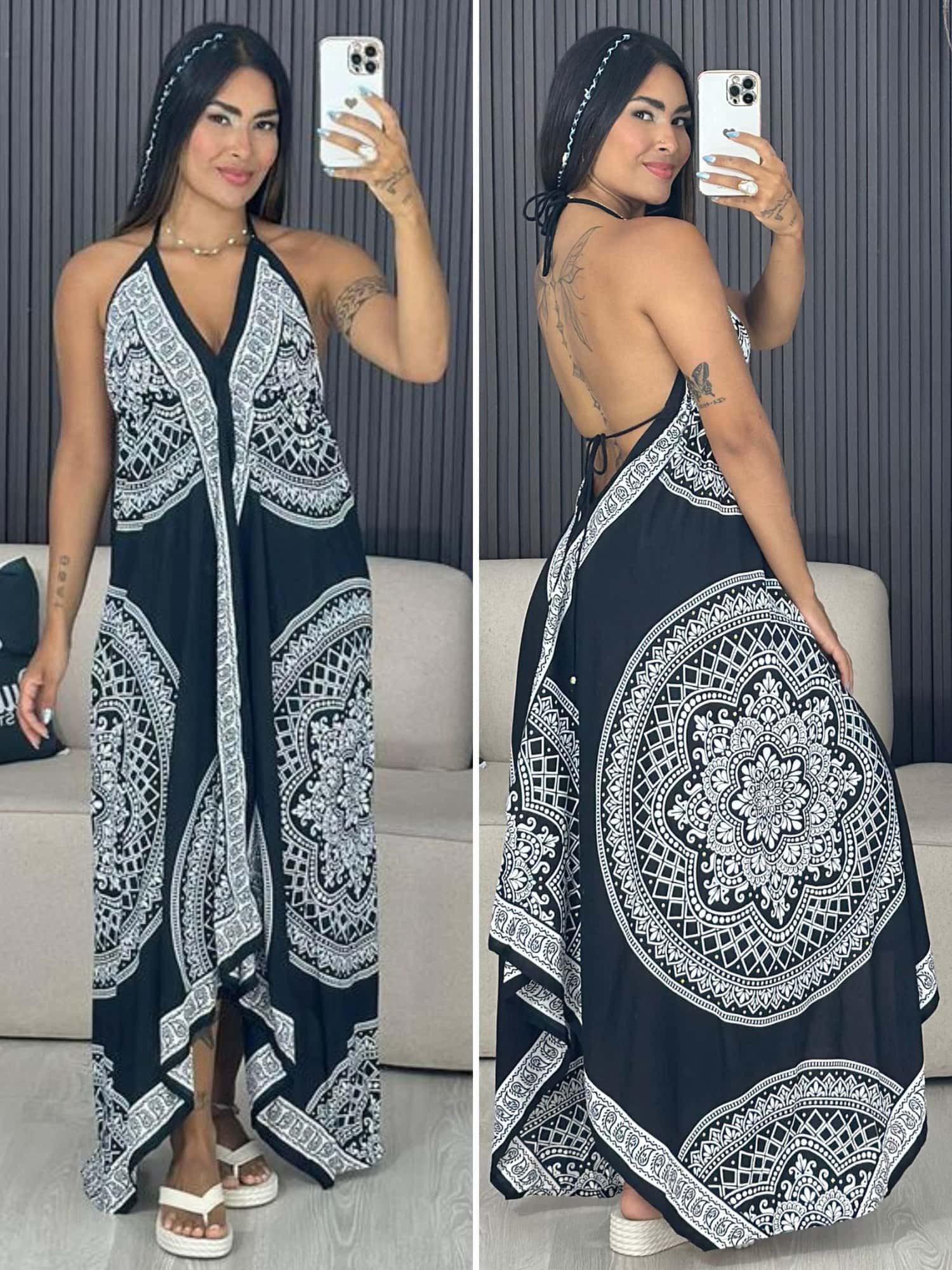Vestido Indiano Preto com Branco Sabrina 6120