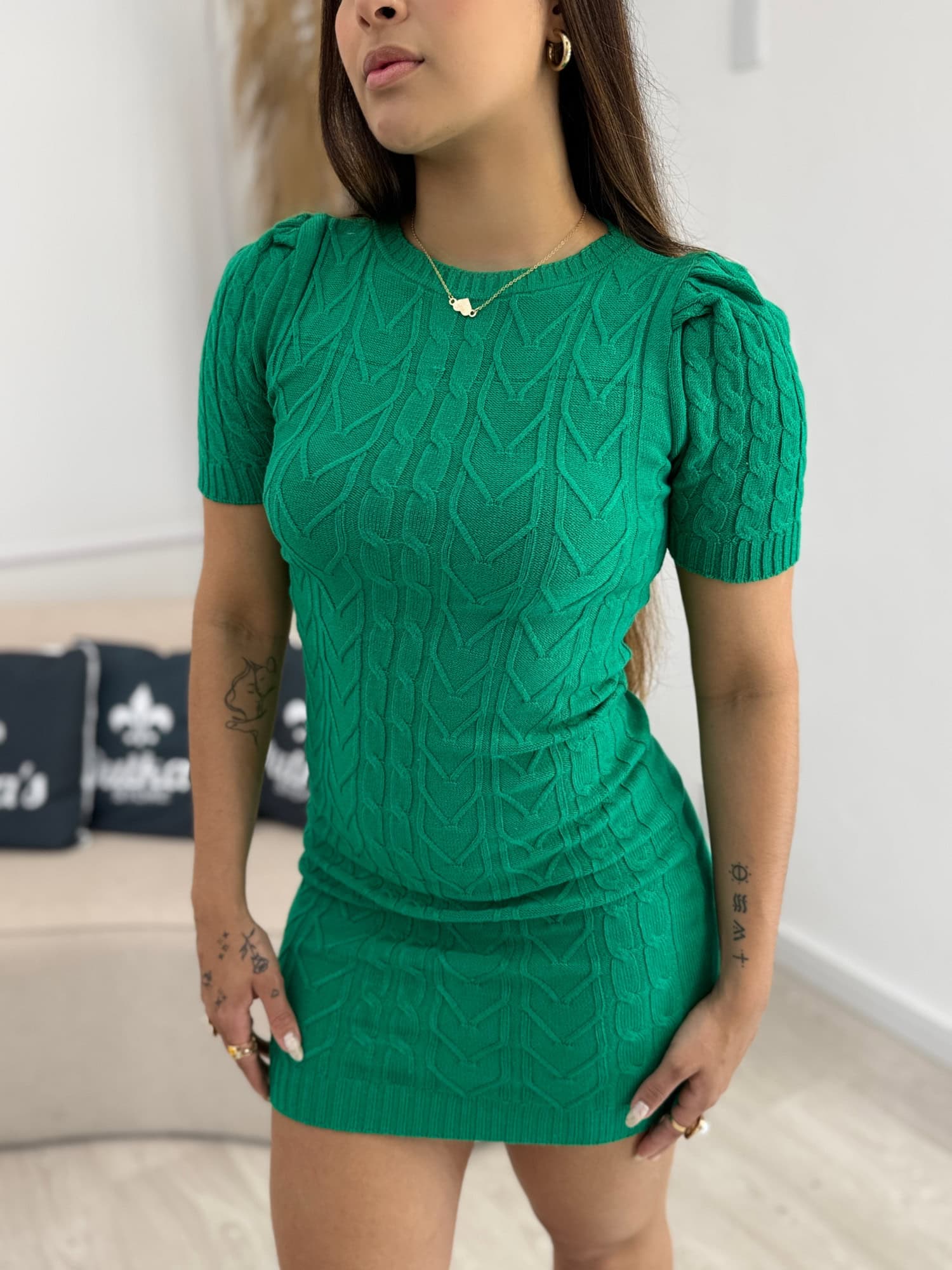 Vestido Modal Manga Curta Verde 130